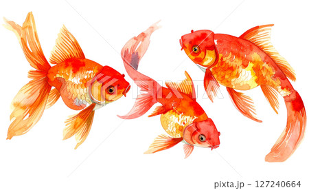 金魚が泳いでいる夏イメージの水彩風背景イラスト
