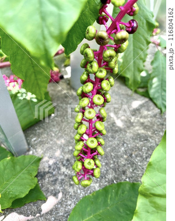 ヨウシュヤマゴボウ_ 洋種山牛蒡の緑色の実