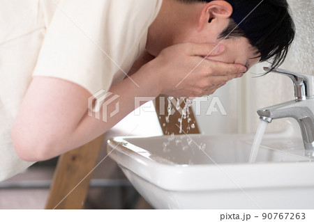 洗顔をする男性