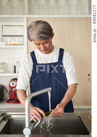 皿洗いをする男性