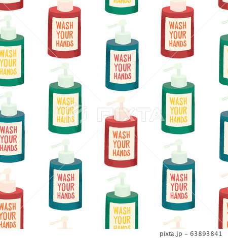 Hand soap bottles seamless vector pattern. Repeating background with soap containers with Wash your