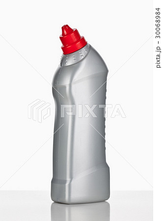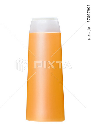 plastic bottle with white cap for shower gel and skin care isolated object on white background front view, nobody.