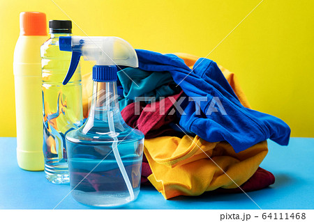 Laundry and cleaning bottle and box, soap, soften and spray for clean