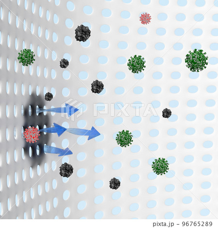 3d shows dirt on the fabric for advertising detergent with arrow, air purifier, dust, virus, allergen, filter layer for air purifier, 3d render illustration isolated on blue background