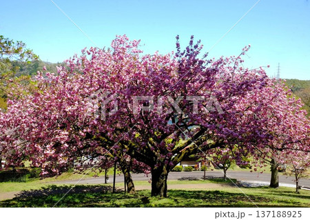公園に咲く満開の八重桜 【相模原市津久井 4月】