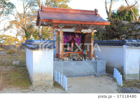 春の兵庫県洲本市の洲本城跡にある芝右衛門狸の祠