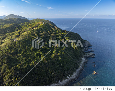 ドローン空撮した長崎県新上五島町津和崎の津和崎灯台と岬の風景