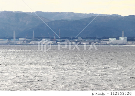 洋上から眺める福島第一原子力発電所の1号機~6号機(2024年3月)
