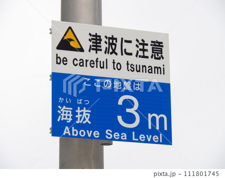 津波浸水区間案内板大津波警報避難指示避難勧告避難準備東日本大震災Tsunami
