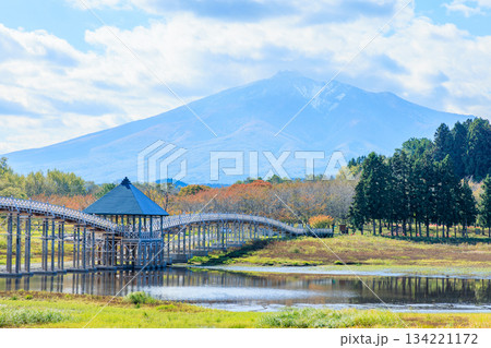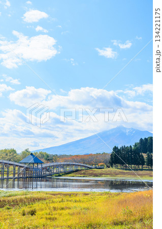 秋の鶴の舞橋と岩木山 青森県北津軽郡