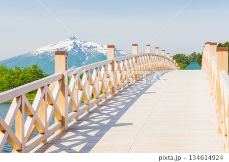 春の青森県鶴田町 富士見湖パーク 鶴の舞橋