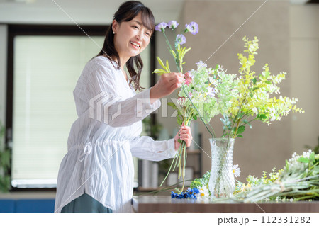 女性 家族 夫婦 フラワーアレンジメント リビング ライフスタイル
