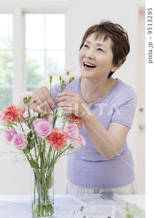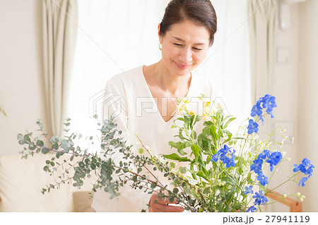 花をいける中高年女性