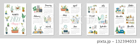 手繪極簡風格可愛居家插圖直式設計月曆,桌曆、記事本、筆記本、待辦事項、備忘錄、日記素材圖片