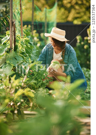 ESG and Nutrition. Young woman mixing colorful vegetables in a bowl for a healthy salad.