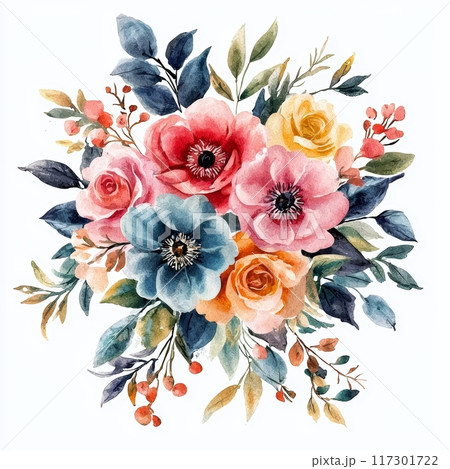 Watercolor Bouquet Composition Isolated on White Background, Floral Arrangement for Wedding or Event Decoration Generative AI