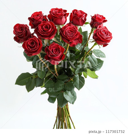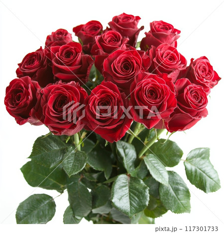 Fresh Red Roses Arranged in a Bouquet on White Background, Perfect for Valentine's Day or Anniversary Gift Generative AI