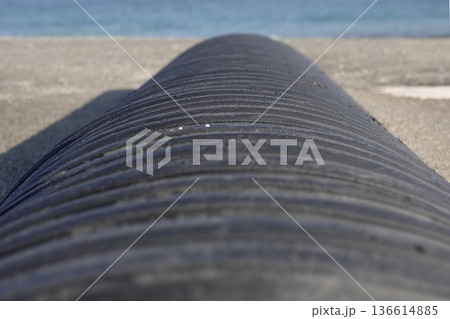 海岸に流れ着いたタイヤ