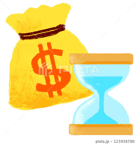 砂時計とお金が入った袋 クレヨンタッチ シンプルイラスト