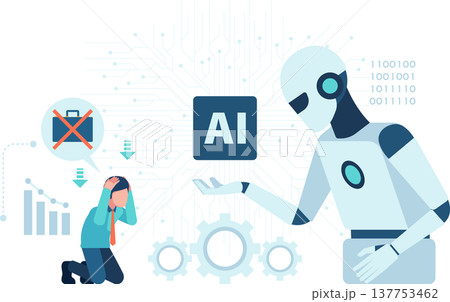 Isometric AI Robot Replacing Human Workers in The Workplace