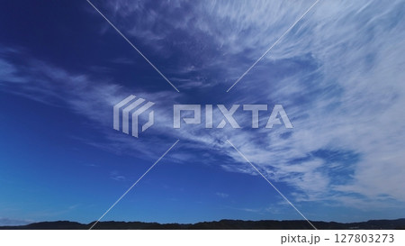 爽やかな青空に雲がダイナミックに広がった朝空・冬・超広角・空主体・240226am