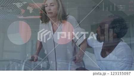 Physiotherapy, tablet and woman with senior patient with medical results, consulting and mobility. Physical therapy, support and person on digital tech for diagnosis, treatment or rehabilitation