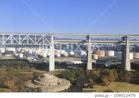 香川・坂出 陸上部分の瀬戸大橋 瀬戸記念公園とコスモ石油物流基地