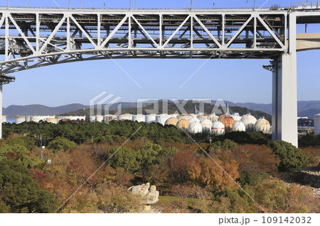 香川・坂出 瀬戸大橋、瀬戸大橋記念公園とコスモ石油坂出物流基地(番の州臨海工業団地)