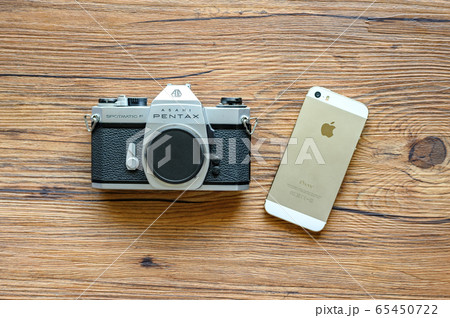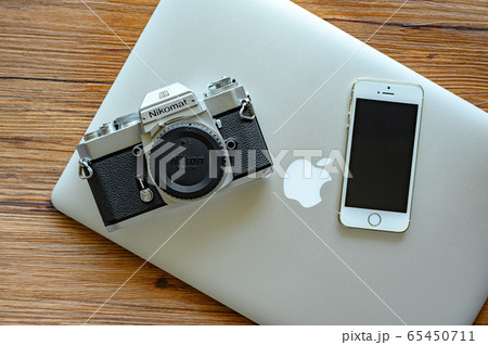 フィルムカメラとノートパソコンとスマホ