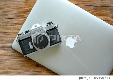 フィルムカメラとノートパソコン
