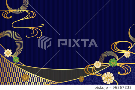 和の背景 白 紺と金 流線 和柄パターン