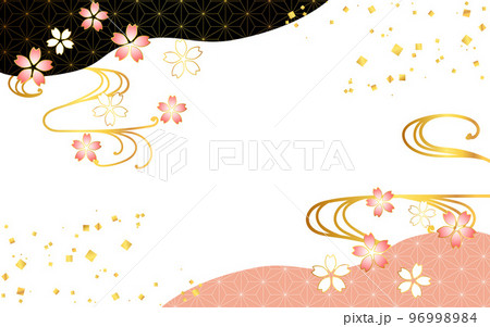 桜の背景 金 黒 ピンク 桜 雲 紙吹雪 麻の葉