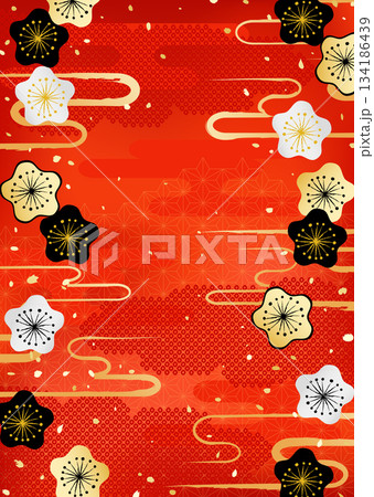 梅の花と日本の伝統模様を組み合わせた華やかな背景イラスト