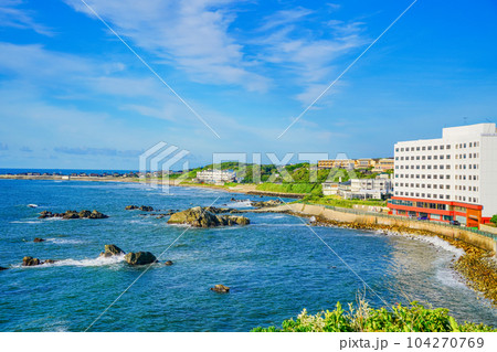 (千葉県)晴天下の犬吠埼 白亜紀浅海堆積物の海岸