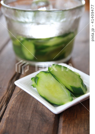たたききゅうり 浅漬け ガラスの器 明るい背景