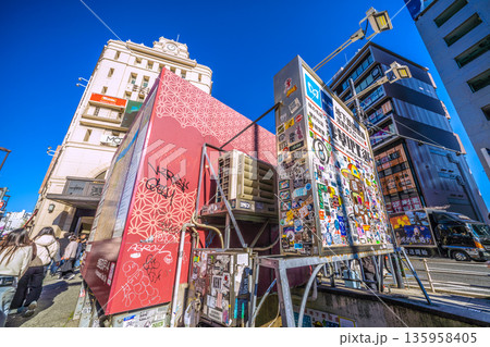日本の東京都市景観 浅草エキミセ前・東京メトロ地下鉄銀座線浅草駅入口、浅草地下街(出入口)などを望む
