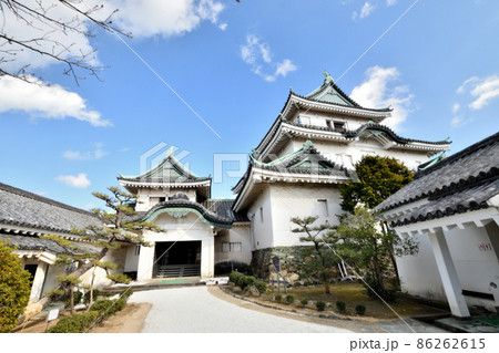 史跡和歌山城、虎伏山とらふすやまに立つ和歌山県のシンボル、紀州徳川家の居城、青空に白壁の城