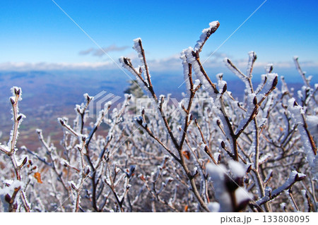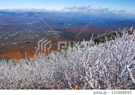 嬬恋村の田園風景と浅間山外輪山の霧氷