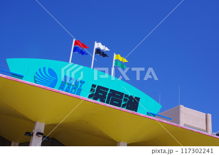 青空に映えるランドマークタワー 青空の広がる浜名湖ガーデンパーク