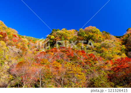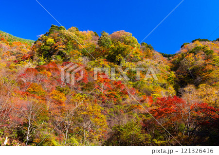 埼玉県秩父市浦山 秩父さくら湖に流れ込む浦山川沿いの紅葉の名所浦山渓谷の山の紅葉