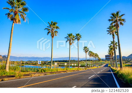 秋の川尻浦山川線と開聞岳 鹿児島県指宿市