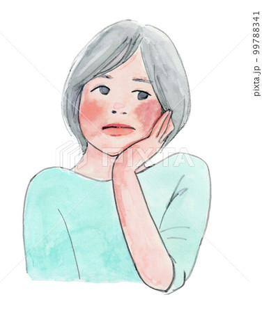 憂鬱な表情の年配女性/上半身