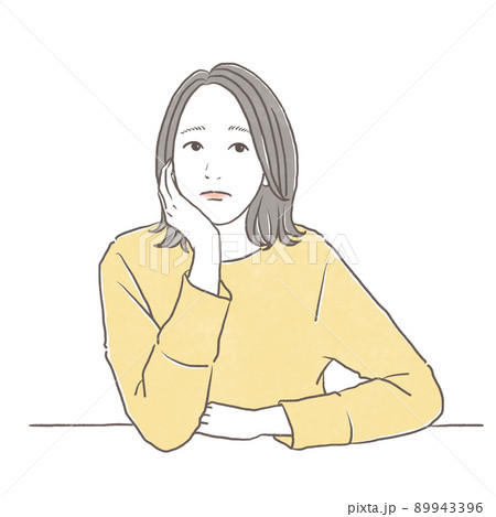 頬杖をつく困り顔の女性