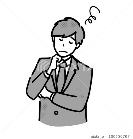 悩んでいる制服の男子学生イラスト モノクロ