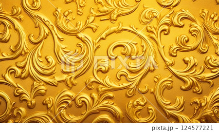 金色の板に装飾された草模様のレリーフのアップ