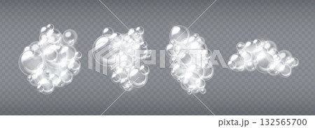 Soap sud bubbles set on transparent