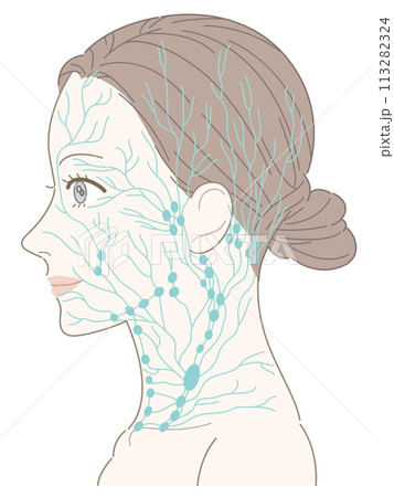 女性 横顔 首 リンパ節(ピンク色) 名称なし
