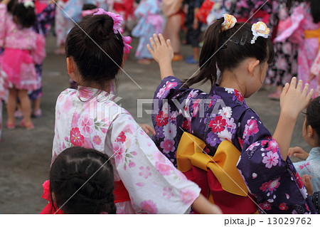 浴衣姿の子供達と夏祭りのイメージ 花火 団扇