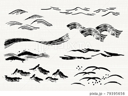 和風の背景素材の【波波ライン】 墨で描いた素朴なグラフィックイラスト