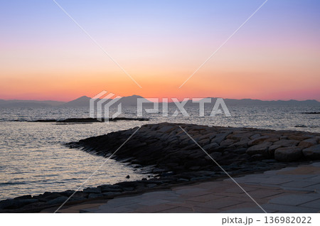 山口県 焼野海岸の美しい夕焼け風景